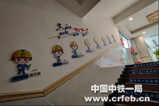 在通往二樓的左拐墻面上,張貼著“牢固樹立‘強(qiáng)化執(zhí)行就是創(chuàng)效’的管理理念”,警示著員工要養(yǎng)成、執(zhí)行猶如家規(guī)的工作指示、通知和要求。行走在樓梯臺(tái)階時(shí),左側(cè)墻面張貼著“凡是工作必帶目標(biāo)”“凡是目標(biāo)必帶計(jì)劃”“凡是計(jì)劃必帶方案”的延伸執(zhí)行力內(nèi)容的標(biāo)語;樓層拐角墻面,是新時(shí)代中國中鐵主人翁精神標(biāo)語,也是作為項(xiàng)目部員工“堅(jiān)定理想信念,以更加飽滿的精神狀態(tài)、更加昂揚(yáng)的奮斗姿態(tài),展示新時(shí)代‘開路先鋒’形象”的規(guī)定;隨著臺(tái)階上走左側(cè)墻張貼的“我問了”“我聽懂了”“我理解了”“我學(xué)會(huì)了”“我記住了”標(biāo)語,不正像我們?nèi)松徊讲降某砷L完美過程,也提醒著我們要刻苦勤奮,要努力拼博,要奮發(fā)向上,樹立遠(yuǎn)大理想,才能有所收獲,進(jìn)而取得成功。
