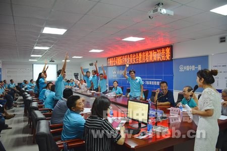 此次競(jìng)賽結(jié)合全員安全教育培訓(xùn)活動(dòng)要求,競(jìng)賽內(nèi)容既有安全操作規(guī)范、安全法規(guī)類題目,又有緊密聯(lián)系施工現(xiàn)場(chǎng)安全管理、安全操作的實(shí)踐類題目,競(jìng)賽由個(gè)人必答題、搶答題、集體共答題3個(gè)環(huán)節(jié)組成。參賽隊(duì)員在比賽過程中充分發(fā)揮聰明才智,個(gè)人必答題環(huán)節(jié)往往是主持人話音剛落,選手的答案便脫口而出;最為激烈的搶答題環(huán)節(jié),未等主持人念完題目,就有選手高高舉起手臂搶著答題,前兩個(gè)環(huán)節(jié)中幾乎沒有任何一個(gè)選手出現(xiàn)失誤;集體共答題環(huán)節(jié),選手抓住每題得分點(diǎn)詳盡敘述,表現(xiàn)出了較強(qiáng)的團(tuán)隊(duì)精神和個(gè)人實(shí)力,整個(gè)競(jìng)賽你追我趕,互不示弱,場(chǎng)面氣氛熱烈。競(jìng)賽中還融入了觀眾參與搶答,調(diào)動(dòng)了全體員工共同參與的熱情。經(jīng)過近一個(gè)小時(shí)的激烈決逐,最終各代表隊(duì)按得分多少?zèng)Q出第1、2、3名,東平2號(hào)隧道分部代表隊(duì)勇奪第一名,佛肇項(xiàng)目部代表隊(duì)贏得第二名,東平新城車站分部排名第三。公司領(lǐng)導(dǎo)為參加競(jìng)賽代表隊(duì)選手頒發(fā)了獎(jiǎng)品和紀(jì)念品。