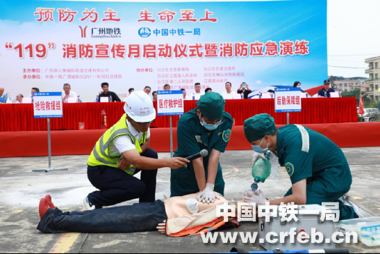 廣東珠三角城際軌道有限公司、中鐵一局一公司、白云區(qū)應急管理局、住建交通局質量安全監(jiān)督站、白云區(qū)神山消防救援站,第二人民醫(yī)院等單位負責人及項目參建人員共100余人參加此次消防演練活動。