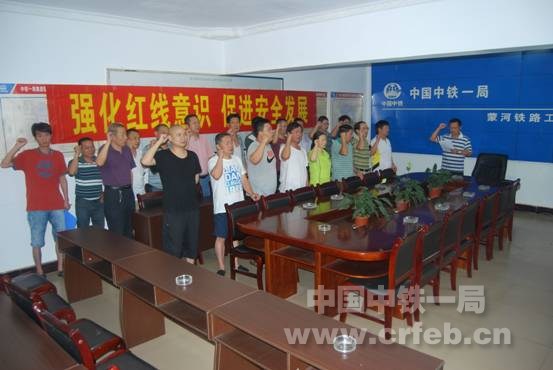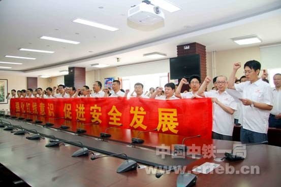 2014年6月,是我國第13個“安全生產月”,今年的活動主題是“強化紅線意識,促進安全發(fā)展”。宣誓結束后,大家還在寫有“強化紅線意識、促進安全發(fā)展”的橫幅上簽字。