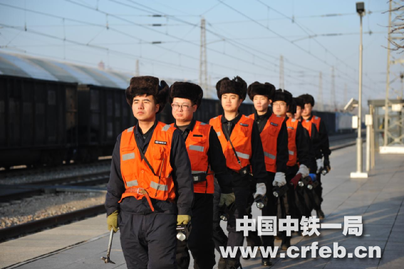 行進(jìn)途中,每隔一段距離便會有一名檢車員離開小隊(duì),并在預(yù)定位置停留。約一刻鐘后,列車迎面駛?cè)胝緝?nèi)。這時(shí),幾人已經(jīng)做好準(zhǔn)備,雖遠(yuǎn)遠(yuǎn)隔開,卻在站臺邊再次站成一條線。