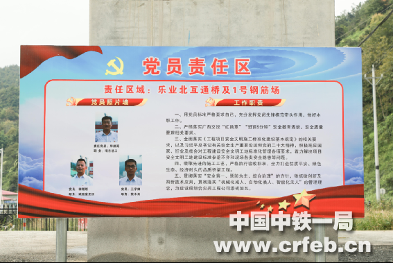 走進樂業北互通橋施工區域,一塊偌大的“黨員安全責任區”告示牌豎立眼前,以黨員骨干為核心,青年團員為主力的紅色力量為施工安全保駕護航。