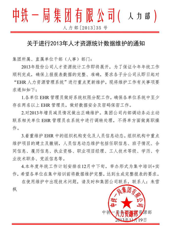 關于進行2013年人才資源統計數據維護的通知