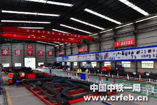 作為臨建標(biāo)準(zhǔn)化建設(shè)的重要標(biāo)志,桂鐘5、8標(biāo)段的鋼筋加工廠,廠房高度12米,作業(yè)場(chǎng)地平整、硬化。加工場(chǎng)內(nèi)醒目位置都設(shè)置工程公示牌、施工平面布置圖、安全生產(chǎn)牌、消防保衛(wèi)牌、管理人員名單及監(jiān)督電話牌、文明施工牌等明示標(biāo)志。加工廠內(nèi)按照功能設(shè)立了原材料堆放區(qū)、鋼筋下料區(qū)、加工制作區(qū)、鋼筋籠預(yù)拼接區(qū)、半成品堆放區(qū);還設(shè)置安裝了龍門數(shù)控切割機(jī)、全自動(dòng)數(shù)控液壓鋼筋調(diào)直切斷機(jī)、鋼筋快速鋸床、數(shù)控鋼筋彎曲機(jī)、數(shù)控鋼筋調(diào)直機(jī)、數(shù)控鋼筋彎箍機(jī)、數(shù)字化工業(yè)焊接機(jī)器人、數(shù)控滾籠焊機(jī)、數(shù)控立式彎曲中心、全自動(dòng)數(shù)控彎箍機(jī)、鋸切套絲打磨生產(chǎn)線等等機(jī)械化、數(shù)字化設(shè)備并懸掛著機(jī)械操作安全規(guī)定公示牌和設(shè)備標(biāo)示牌。這些工裝工藝標(biāo)準(zhǔn)化為項(xiàng)目部標(biāo)準(zhǔn)化建設(shè)賦能。
