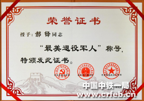 “最美退役軍人”證書