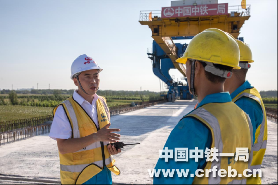 郝鐸在架梁現(xiàn)場給作業(yè)人員進(jìn)行技術(shù)交底