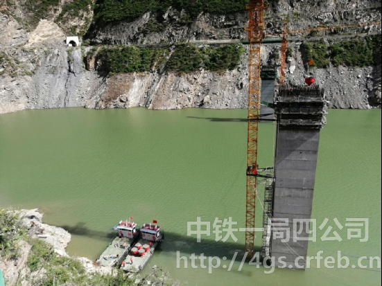 黑水縣自然環境復雜多變,強風驟雨伴隨著司空見慣的塌方落石,白天平靜的河面經過一個晚上水位線便會上漲3-4米,使得地處于深水庫區的工程有效施工時間壓縮的所剩無幾。在這樣的極端環境下建黑水河大橋,想過設計纜索吊施工,但由于一岸就是當地的經濟命脈國道347線,沒有足夠的工作面,且安全風險極大,只得作罷;想過人造浮橋施工,但河水水位上漲下落無法控制只得放棄。經過反復的實地考察、研討分析后,霍永強回到公司編寫了一個月的施組方案,最終決定用運輸船運輸混凝土灌注墩身,保障項目整體施工能順利進行下去。