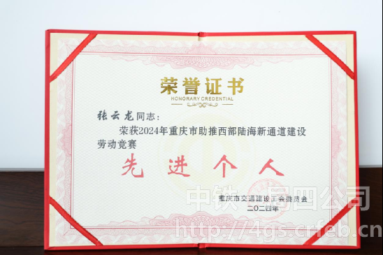 近日,中鐵一局集團有限公司重慶至黔江鐵路站前3標項目經理部在2024年重慶市交通建設系統助推西部陸海新通道建設勞動競賽中榮獲先進班組稱號,項目負責人張云龍榮獲先進個人榮譽稱號。