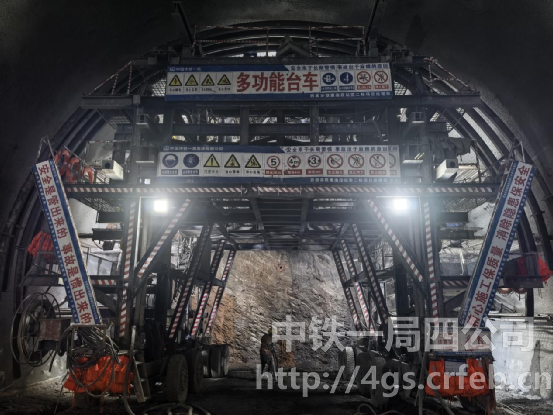 向陽一號隧道洞口位置山高坡陡、緊鄰前河,場地狹窄,便道高陡。洞身穿越地層以Ⅲ、Ⅳ、Ⅴ級圍巖為主,包含淺埋偏壓及斷層段、巖溶與巖溶水、煤層及瓦斯等有害氣體、危巖落石、突泥涌水、巖爆、Ⅰ級軟巖大變形等多種不良地質(zhì)風(fēng)險。隧道圍巖級別交替變化多達58次,在不同圍巖地段又不乏其特殊性。面對復(fù)雜地質(zhì)條件、施工任務(wù)艱巨、施工安全風(fēng)險高等挑戰(zhàn),項目以技術(shù)創(chuàng)新為推手,推動機械化、智能化的標(biāo)準(zhǔn)化隧道施工。項目技術(shù)團隊采用TSP超前預(yù)報、地質(zhì)雷達掃描、瞬變電磁探測、超前水平鉆探、隱伏巖溶釬探、加深炮孔探測等綜合性超前預(yù)報的方式,對施工過程實行動態(tài)、全過程監(jiān)控。在向陽一號隧道大機工區(qū),全電腦三臂鑿巖臺車、錨注一體機等工裝成為“主力軍”,采取開挖、出渣、噴漿雙機作業(yè),施工效率與質(zhì)量顯著提升。在非大機工區(qū)采取短臺階切換式開挖臺車取代常規(guī)分臺階施工開挖臺架,有效解決了簡易臺架在施工過程中工序干擾大,機械拖動不便、掌子面支護人員多、立架時間長、施工安全風(fēng)險大等問題,并結(jié)合應(yīng)用36米初支、仰拱、填充多工序施工自行式仰拱棧橋施工,由單機出渣、單機噴漿改進為雙機出渣、雙機噴漿,極大提升了隧道施工效率,打出掘進提效“組合拳”,3月8日向陽一號隧道進口正洞掘進突破2000米大關(guān)、3月30日向陽一號隧道進口平導(dǎo)累計掘進突破3000米大關(guān)等多個好成績,為隧道安全質(zhì)量奠定了堅實基礎(chǔ),確保了隧道安全高效優(yōu)質(zhì)建設(shè)。