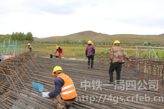 工人綁扎涵洞頂板鋼筋