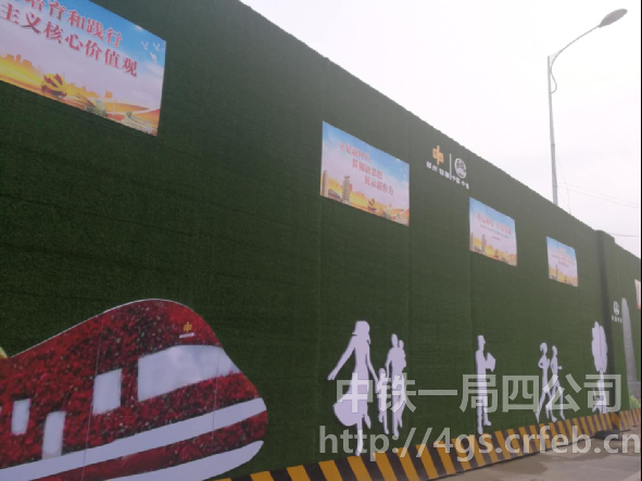 項目部的工點都處在繁華街區(qū),又是挨著鄭州火車站,在還沒有建點之前,建設方就對文明施工和形象展示做出了明確要求,提出檔次和標準都不能低,既要有傳統(tǒng)更要有創(chuàng)新,特別是對火車站的工地和項目部駐地要重點打造。項目黨支部書記樊榮說:形象展示既是業(yè)主的要求,更是我們企業(yè)的需要,這是宣傳中鐵一局品牌,彰顯企業(yè)良好形象的大好機會。怎么才能在傳統(tǒng)的基礎上實現(xiàn)創(chuàng)新,樊榮這個搞工程技術出身的支部書記可是沒少動腦筋,對施工圍檔全部采用仿綠草皮全包,對文化墻進行精心設計制作,展示內容豐富,標識醒目大氣,給市民帶來了強烈的視覺沖擊。