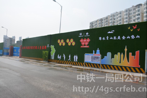在繁華熱鬧的鄭州市火車站西廣場北邊,緊鄰站北街北側,被工地大門一分為二的高5.5米圍擋(草綠色文化墻)很是搶眼,文化墻上除了企業(yè)標識之外,還繪制了大量富有河南地方文化特色的名勝古跡、工人勞動場面以及“綠水青山就是金山銀山”等環(huán)保標語,這大門兩側各長約150米的文化墻從色彩和內容上看起來讓人賞心悅目,給人來人往的火車站廣場,增添了都市一道靚麗的風景線。這就是中鐵一局四公司鄭州市政控制節(jié)點工程施工現(xiàn)場,該項目自2017年7月10日開工以來,項目部以企業(yè)核心價值觀為統(tǒng)領,將項目文化融入項目管理的全過程,呈現(xiàn)出創(chuàng)新共享、合作共贏的項目文化新特色,項目部在項目管理、安全質量、成本管控、團隊建設等方面齊頭并進全面發(fā)展,同時也多次受到建設方好評,項目負責人陳宏俊榮獲集團公司黨委優(yōu)秀共產黨員榮譽稱號,項目部黨支部被四公司黨委表彰為先進黨支部,支部書記樊榮被四公司黨委表彰為優(yōu)秀黨務工作者。
