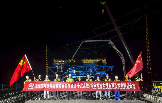 湖北麻城訊:9月8日凌晨2時(shí),中鐵一局承建的合武高鐵2標(biāo)宋埠特大橋施工現(xiàn)場(chǎng)燈火通明、煙花齊放。隨著最后一方混凝土澆筑完成,該橋跨干沙河290號(hào)-293號(hào)墩(40+64+40)米首聯(lián)連續(xù)梁順利實(shí)現(xiàn)合龍,標(biāo)志著合武高鐵建設(shè)取得又一重大階段性進(jìn)展。