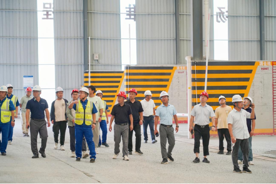 觀摩團一行先后走進試驗室、拌和站與三工區梁場,仔細察看臨建工程的細節設計與功能布局,直觀感受中鐵一局標準化建設的落地成效。在項目部講解人員的引導下觀摩人員從數據實時采集、智能調度配料,到設備遠程監控,結合拌和站從“人工盯守”到“智能值守”的實踐案例,詳細了解了項目拌和站信息化技術。此外,觀摩人員還了解了臨建工程建設標準化選址、模塊化搭建的實戰經驗。在三工區梁場依次了解了梁場試驗室、信息化中心、鋼筋加工廠、制梁存梁區、物資庫房內的創新成果,引得觀摩團成員頻頻舉起手機拍照記錄關鍵信息。針對日常管理體系,項目部相關人員以“高起點謀劃、高標準開局、高質量建設、高效率推進”的理念為核心,逐個解讀標準化管理在臨建階段的全流程應用,從方案策劃到落地執行的管理模式獲一致認可。