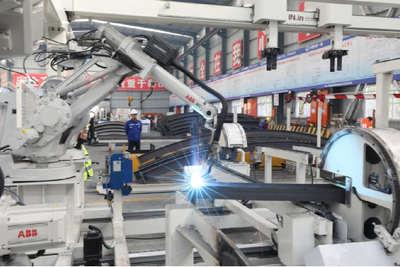 智能鋼構廠機器人激光切割鋼拱架——侯若斌攝