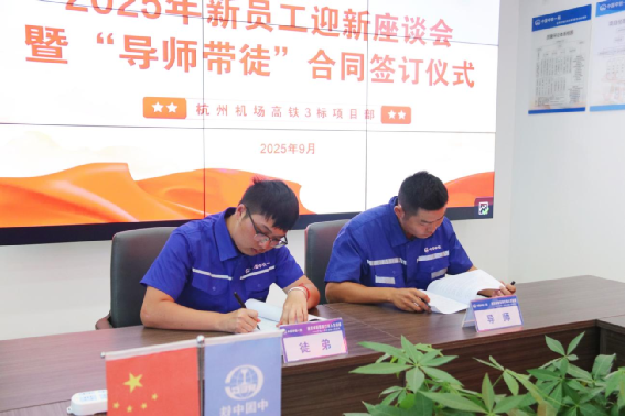 這場充滿儀式感的“導師帶徒”簽約儀式,是項目部培養新員工的“壓軸戲”。新員工分別與技術骨干、管理能手結成對子,簽訂《導師帶徒協議書》,明確師傅需“手把手教技術、心貼心傳經驗”,徒弟要“虛心學、認真練”,并且每日要撰寫工作匯報,在季度末進行總結匯報……。