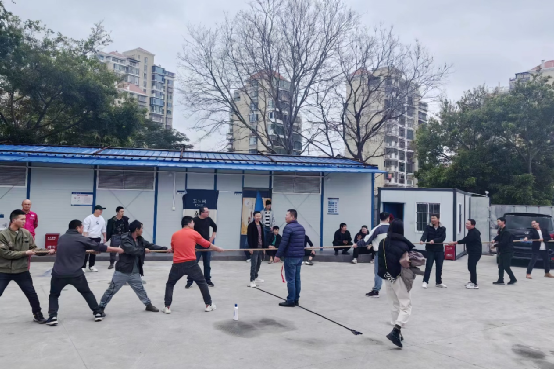 除夕當天,項目部組織留守員工歡度佳節(jié),喜迎農(nóng)歷甲辰新年。紅色的春聯(lián)最顯喜慶,將項目部的節(jié)日氛圍一下拉滿。大家有忙著掃院子的,有忙著貼春聯(lián)的,還有忙著搟皮包餃子的,現(xiàn)場有說有笑,熱鬧非凡,洋溢著喜慶與歡樂的氛圍。“加油!加油!使勁兒……”在一陣陣吶喊聲中,拔河比賽拉開帷幕。此外,套圈、博餅等文體娛樂活動也同步進行。