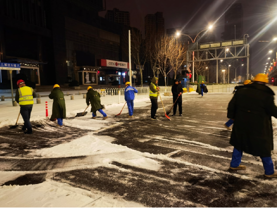 項目為應對新一輪寒冷極端天氣,一方面編制由項目領導班子帶班的應急值班表,項目部全員24小時待命,做好隨時應急準備,另一方面準備融雪所需的融雪劑、草袋、鐵鍬、裝載車及登高車等特種設備,保證人工融雪工作開展。一場低溫風雪,項目部全體人員迅速行動,高效除冰除雪,為周邊居民平安出行保駕護航,充分彰顯一局央企的責任擔當和鐵軍風采。