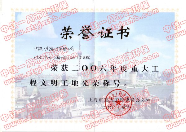 版權所有:中國中鐵一局集團市政環保工程有限公司 Copyright @2005 All rights reserved
