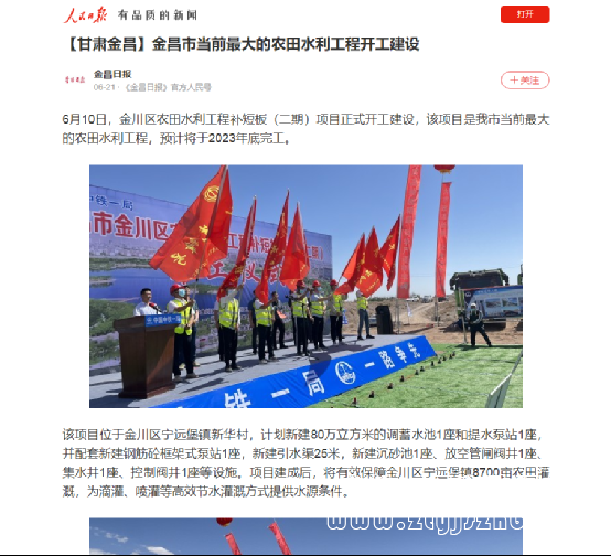多家媒體報(bào)道公司承建的金昌市最大的農(nóng)田水利工程開工建設(shè)