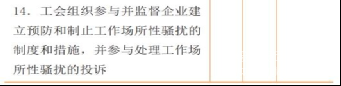 訓(xùn)工作。工會參與用人單位對工作場所性騷擾投訴或舉報的處理過程, 發(fā)現(xiàn)其中存在任何問題,均應(yīng)及時提出改正建議。