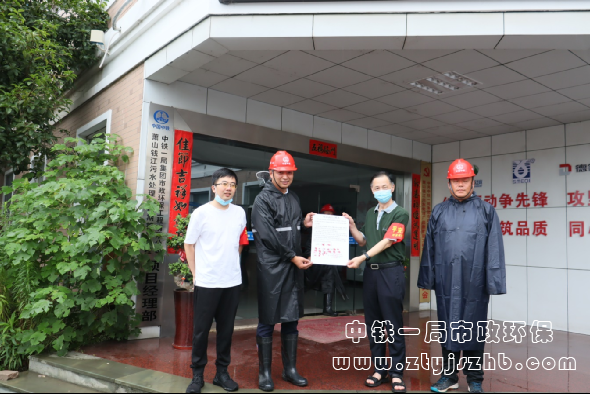 蕭山錢江污水處理廠項(xiàng)目臨時(shí)黨支部向當(dāng)?shù)剡f交“防汛抗臺請戰(zhàn)書”