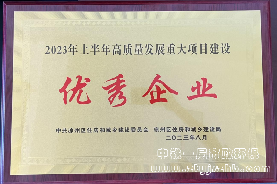 公司涼州城區(qū)污水處理廠項(xiàng)目代表中鐵一局榮獲武威市涼州區(qū)“高質(zhì)量發(fā)展重大項(xiàng)目建設(shè)優(yōu)秀企業(yè)”榮譽(yù)稱(chēng)號(hào)