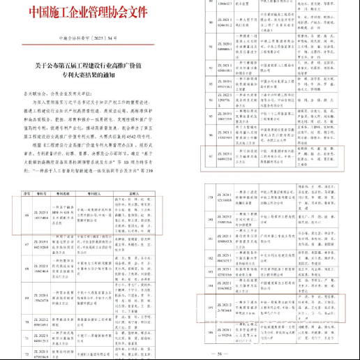 公司三項專利成果榮獲中國施工企業(yè)管理協(xié)會高推廣價值專利