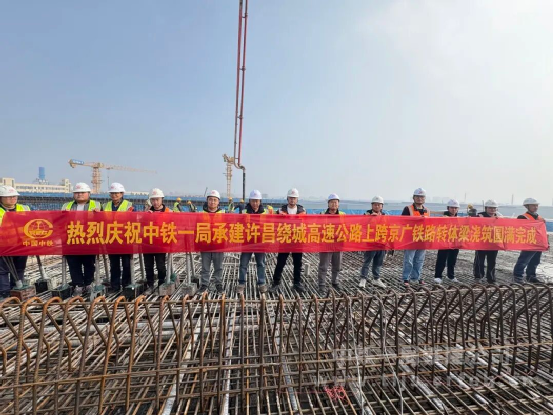 中鐵一局許昌繞城高速涉鐵項目轉體梁澆筑圓滿完成