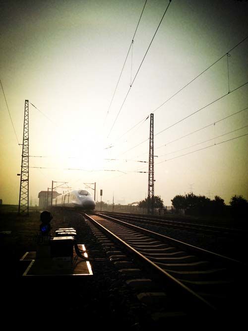 第一名 西成客專項目部何艷云《晨光中的動車》