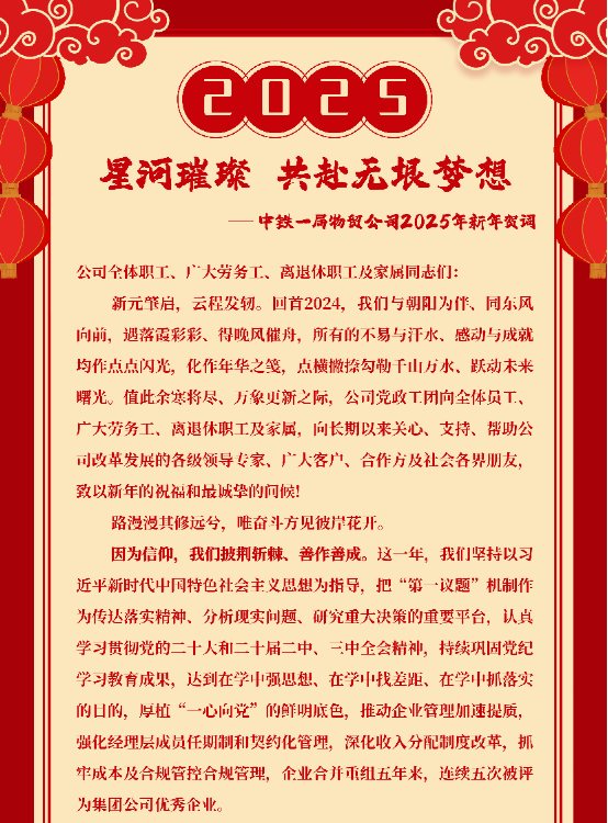 星河璀璨 共赴無垠夢想 ——中鐵一局物貿公司2025年新年獻詞