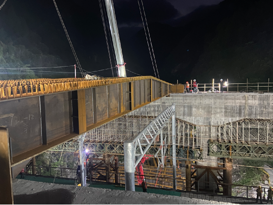 施工期間,重慶持續(xù)的雨季與狹小的作業(yè)空間,成為施工的兩大難題。頻繁降雨給戶外焊接、吊裝等作業(yè)帶來極大不便,多家單位交叉施工又進一步增加了現(xiàn)場協(xié)調(diào)難度。面對困境,施工現(xiàn)場上下擰成一股繩,劉力宏等領(lǐng)導人員堅持“靠前指揮、帶班指導”,把辦公室搬到施工現(xiàn)場。夜間加班趕工成為常態(tài),全體參建人員發(fā)揚“不畏難、不退縮”的鐵軍精神,在雨中搭設(shè)防雨棚保障作業(yè)進度。項目負責人全程駐守一線統(tǒng)籌調(diào)度,技術(shù)人員跟班指導解決現(xiàn)場難題,安全員實時巡查筑牢安全防線,形成“進度不落、質(zhì)量不降、安全不出事”的閉環(huán)管理。
