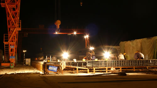 梁場認真貫徹落實公司《工程項目管理標準》,實行箱梁各工序作業時間定額制度,按照時間定額實行獎罰;項目領導輪換值班,管理人員24小時跟班作業,隨時解決施工難題,縮短了各工序作業時間和銜接時間,影響進度的重點工序鋼筋作業由項目領導親自抓,廣大職工克服高溫和連續雨天施工困難,持續掀起大干高潮,保持了日均制梁1.5跨以上的速度。臨潼制梁場所供鋪架箱梁占鄭西全線已架箱梁總數的50%以上,成為鄭西全線的施工亮點。截至今年7月23日,物貿公司鄭西客專臨潼制梁場生產箱梁達到200跨,供應鋪架用梁149跨,是全線17個梁場唯一能不間斷連續供梁的梁場,確保了中鐵一局在鄭西客專架梁始終保持領先。