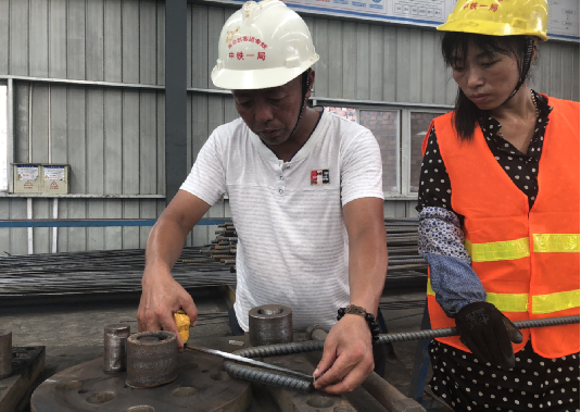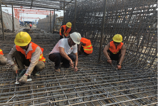 馬忠生在現場指導勞務工們綁扎鋼筋