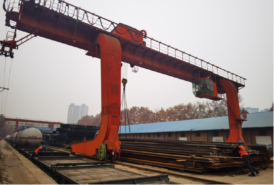 工人在搬運(yùn)鋼軌
