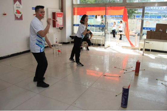 夾乒乓球項目率先拉開帷幕,選手們手持筷子,全神貫注地將乒乓球從一個盆中夾到另一個盆里。小小的乒乓球十分“調(diào)皮”,稍不注意就會掉落,但參賽員工們憑借著嫻熟的技巧和沉穩(wěn)的心態(tài),你追我趕,爭分奪秒。搶凳子比賽則將現(xiàn)場氣氛推向了高潮,每一輪淘汰都讓比賽愈發(fā)激烈,選手們的反應速度和應變能力在這個項目中得到了充分展現(xiàn)。投壺項目充滿了傳統(tǒng)文化的韻味。大家動作瀟灑,箭矢精準入壺,贏得陣陣喝彩。單人跳繩項目中,選手們身輕如燕,跳繩在他們腳下快速飛舞,令人目不暇接;多人跳繩項目則更注重團隊協(xié)作,大家默契配合,隨著繩子的節(jié)奏一起跳躍,展現(xiàn)出了良好的團隊精神。
