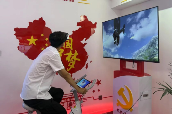 最令人心潮澎湃的當屬 VR 紅色騎行體驗。青年們戴上 VR 眼鏡,踏上動感單車,瞬間穿越時空。南湖紅船的晨曦、井岡山的烽火、延安的窯洞依次在眼前浮現,每一次踩踏,都仿佛是與歷史的共鳴。此刻,他們不再只是騎行者,更是歷史的見證者,以獨特的方式感受著革命先輩們的奮斗征程。