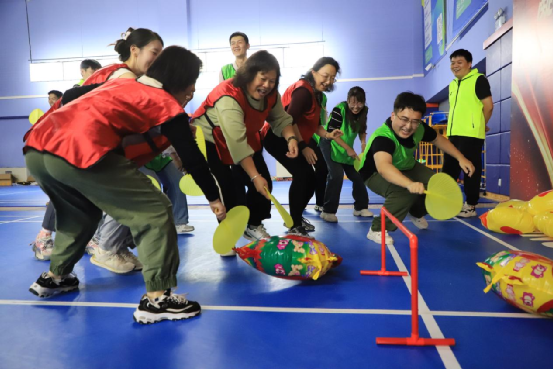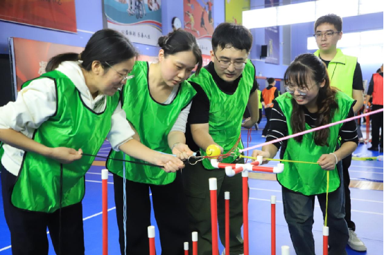 本次趣味運(yùn)動(dòng)會(huì)精心設(shè)置了6個(gè)兼具趣味性與協(xié)作性的項(xiàng)目,每個(gè)環(huán)節(jié)都暗藏“團(tuán)隊(duì)密碼”。“巨人腳步”考驗(yàn)隊(duì)員間的節(jié)奏同步,大家綁著綁帶齊聲喊號(hào),一步一步向著終點(diǎn)邁進(jìn),展現(xiàn)出高度的默契;“節(jié)節(jié)高升”中,職工們小心翼翼地搭建道具,在一次次調(diào)整與配合中,體會(huì)“積小勝為大勝”的道理;“孤注一擲”環(huán)節(jié),參賽選手瞄準(zhǔn)目標(biāo)全力投擲,現(xiàn)場(chǎng)歡呼聲與喝彩聲此起彼伏;“追求卓越”項(xiàng)目里,大家向著同一目標(biāo)奮力沖刺,用速度與激情詮釋奮斗精神;“精誠(chéng)攜手”要求隊(duì)員手拉手完成挑戰(zhàn),讓“團(tuán)結(jié)就是力量”的信念深入人心;“同舟共濟(jì)”則模擬團(tuán)隊(duì)面對(duì)困境的場(chǎng)景,眾人齊心協(xié)作,共同“渡過(guò)難關(guān)”。