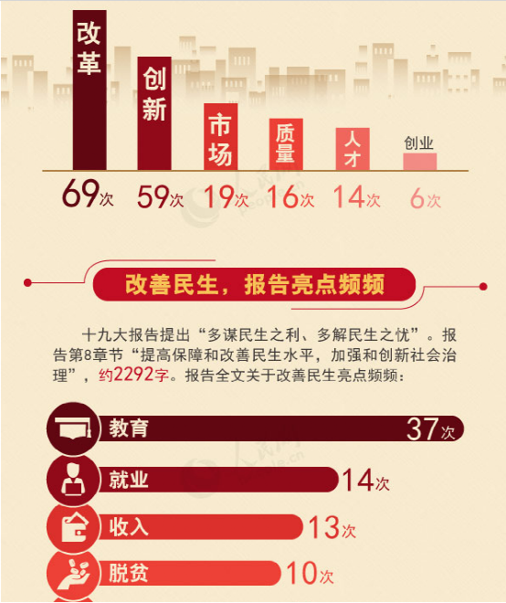 十九大報告提出“多謀民生之利、多解民生之憂”。報告第8章節“提高保障和改善民生水平,加強和創新社會治理”,共2292字。報告全文關于改善民生亮點頻頻: