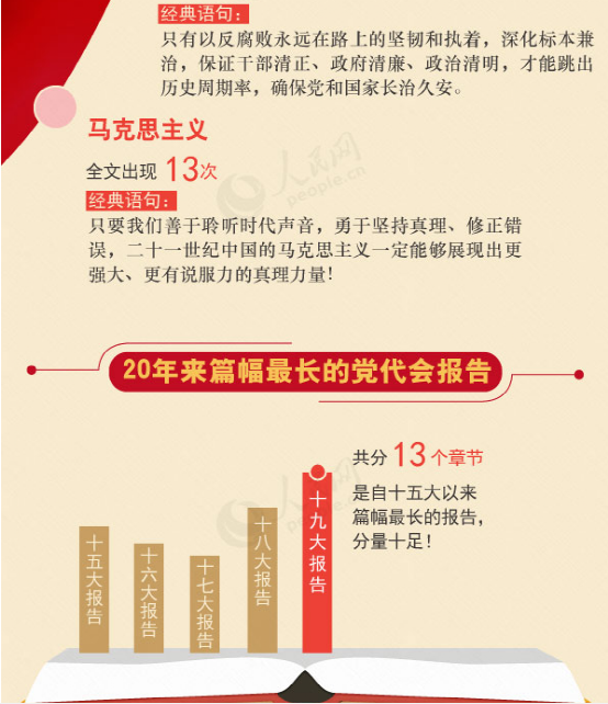 十九大報告共分13個章節,是自十五大以來篇幅最長的黨代會報告,分量十足!
